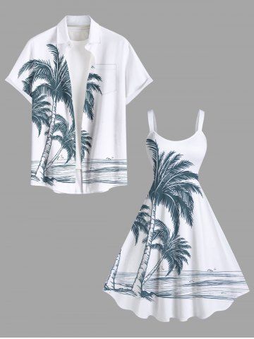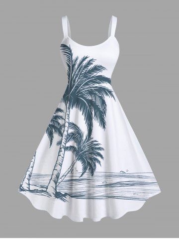 Plus Size Coconut Tree Seascape Print Hawaii Tank Dress - White - 2x