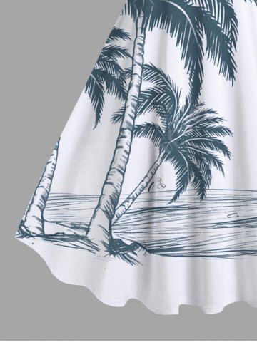 Plus Size Coconut Tree Seascape Print Hawaii Tank Dress - White - 3x