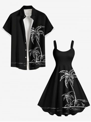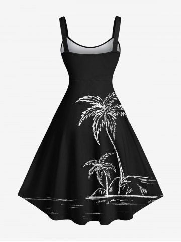 Plus Size Coconut Tree Seascape Print Hawaii Tank Dress - Black - 4x