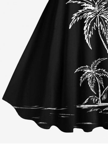 Plus Size Coconut Tree Seascape Print Hawaii Tank Dress - Black - 6x