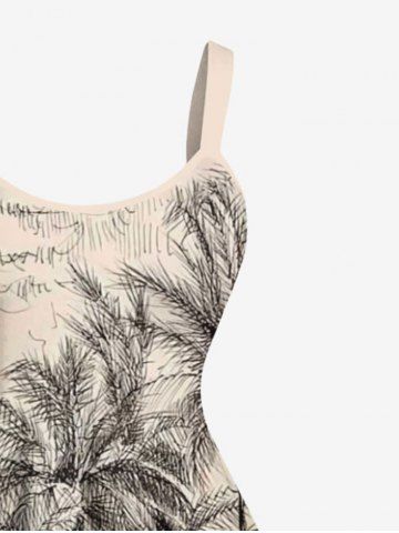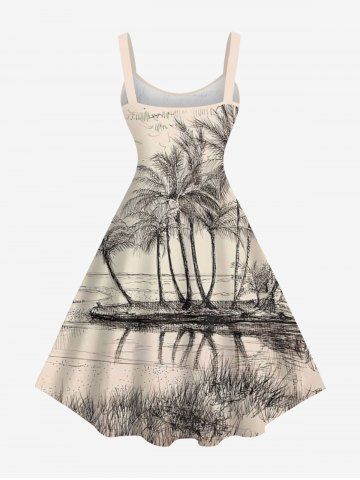 Plus Size Coconut Tree Seascape Print Hawaii Tank Dress - Apricot - 4x