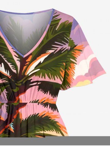 Graphic Dresses > Plus Size Coconut Tree Seascape Sun Print Split Hawaii Midi Dress