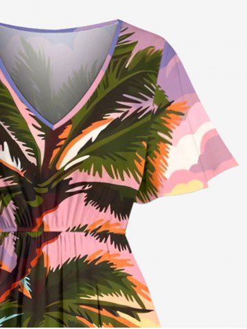 Graphic Dresses > Plus Size Coconut Tree Seascape Sun Print Split Hawaii Midi Dress
