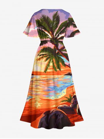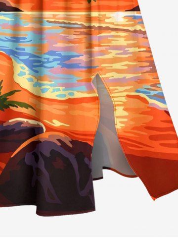 Plus Size Coconut Tree Seascape Sun Print Split Hawaii Midi Dress - Orange - 2x