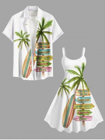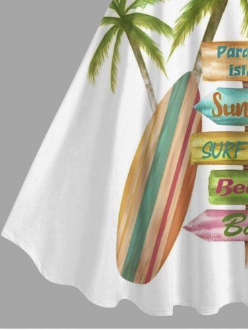 Plus Size Coconut Tree Signboard Print Hawaii A Line Dress - Crystal Cream - Xs