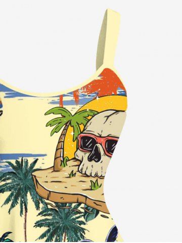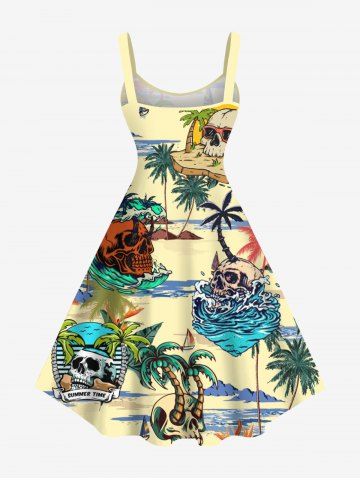 Plus Size Coconut Tree Skulls Sea Waves Print Hawaii Tank Dress - Beige - 4x
