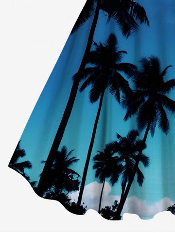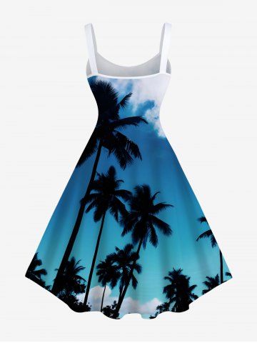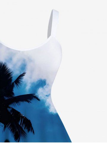 Plus Size Coconut Tree Sky Cloud Print Hawaii A Line Tank Dress - Blue - 4x