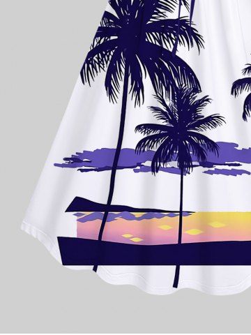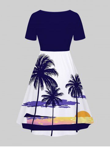 Plus Size Coconut Tree Sky Cloud Sun Print Hawaii Cinched A Line Dress - Multi-a - 2x