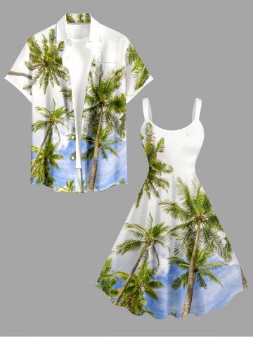 Plus Size Coconut Tree Sky Print Hawaii A Line Dress - White - S