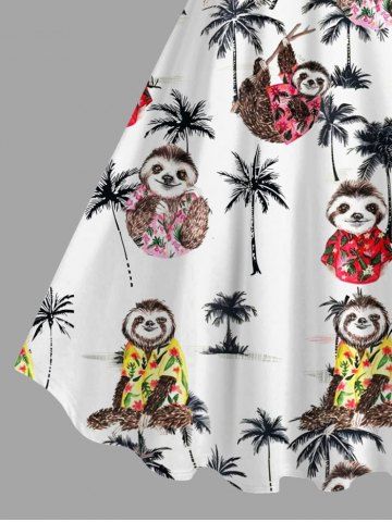 Plus Size Coconut Tree Sloth Print Hawaii Tank Dress - White - M