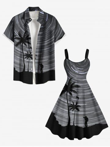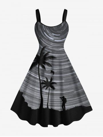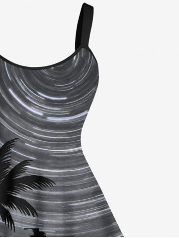 Plus Size Coconut Tree Spiral Galaxy Print Hawaii A Line Tank Dress - Black - S