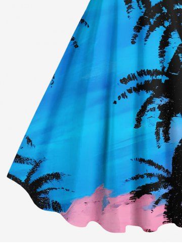 Plus Size Coconut Tree Spotted Print Hawaii A Line Tank Dress - Blue - 4x
