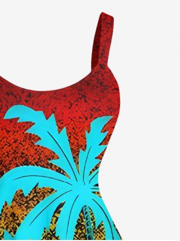 Plus Size Coconut Tree Spray Painting Print Hawaii Ombre A Line Dress - Red - L