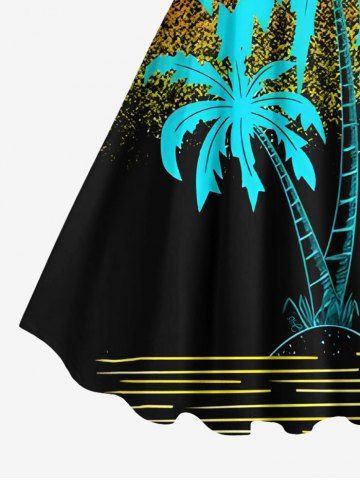 Graphic Dresses > Plus Size Coconut Tree Spray Painting Print Hawaii Ombre A Line Dress