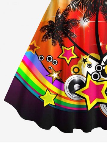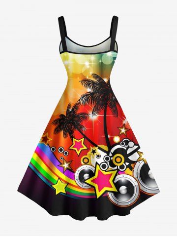 Graphic Dresses > Plus Size Coconut Tree Star Music Tape Rainbow Glitter Sparkling Ombre Light Spot Print Hawaii A Line Dress