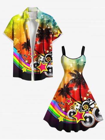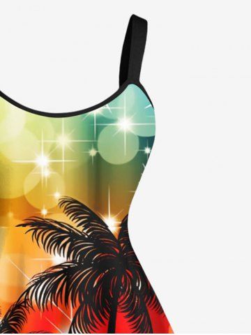 Plus Size Coconut Tree Star Music Tape Rainbow Glitter Sparkling Ombre Light Spot Print Hawaii A Line Dress - Yellow - 6x