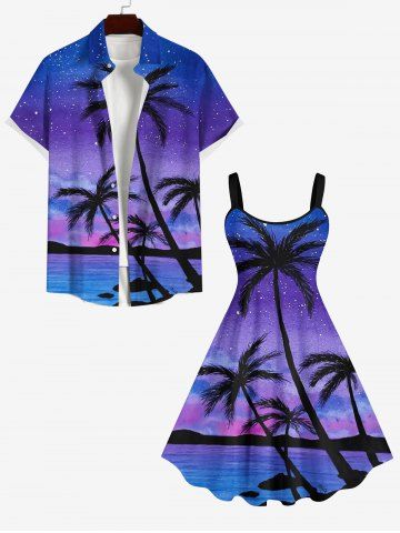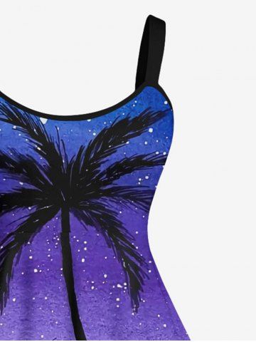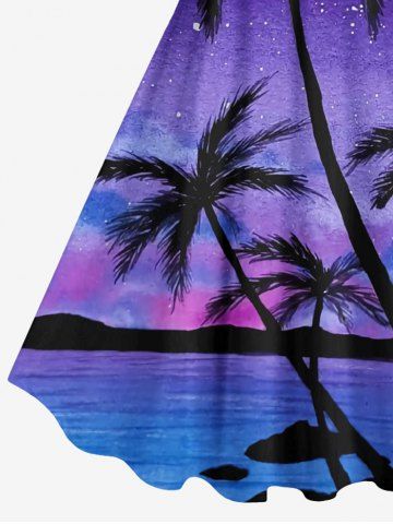 Plus Size Coconut Tree Star Sky Galaxy Sea Print Hawaii Tank Dress - Purple - S