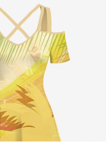 Plus Size Coconut Tree Stars Highway Print Hawaii Crisscross A Line Maxi Dress - Yellow - 4x