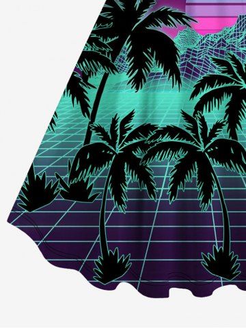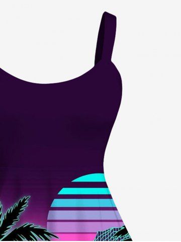 Plus Size Coconut Tree Striped Sun Mountain Synthwave Cyberpunk Neon Grid Print Hawaii Retro Ombre A Line Tank Dress - Black - 4x