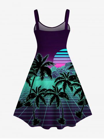 Plus Size Coconut Tree Striped Sun Mountain Synthwave Cyberpunk Neon Grid Print Hawaii Retro Ombre A Line Tank Dress - Black - 6x