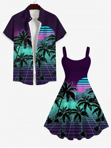 Graphic Dresses > Plus Size Coconut Tree Striped Sun Mountain Synthwave Cyberpunk Neon Grid Print Hawaii Retro Ombre A Line Tank Dress