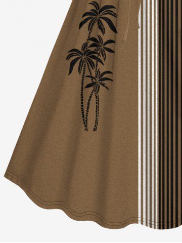 Plus Size Coconut Tree Stripes Colorblock Print Cinched Hawaii Dress - Coffee - 3x