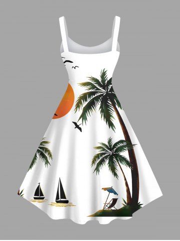 Plus Size Coconut Tree Sun Bird Boat Print Hawaii Tank Dress - White - M