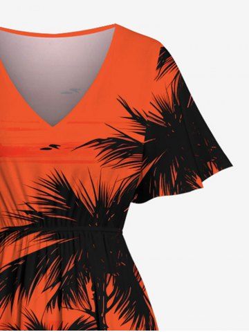 Plus Size Coconut Tree Sun Bird Boat Seascape Print Split Hawaii Midi Dress - Orange - 5x
