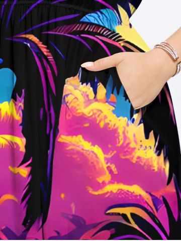 Plus Size Coconut Tree Sun Cloud Ombre Print Split Hawaii Midi Dress - Purple - 6x