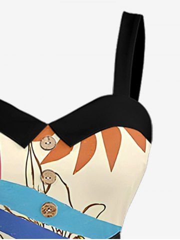 Graphic Dresses > Plus Size Coconut Tree Sun Flower Letter Print Hawaii Button A Line Dress with Removable Belt