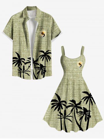 Plus Size Coconut Tree Sun Marled Print Hawaii Tank Dress - Green - M
