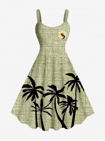 Plus Size Coconut Tree Sun Marled Print Hawaii Tank Dress - Green - 6x