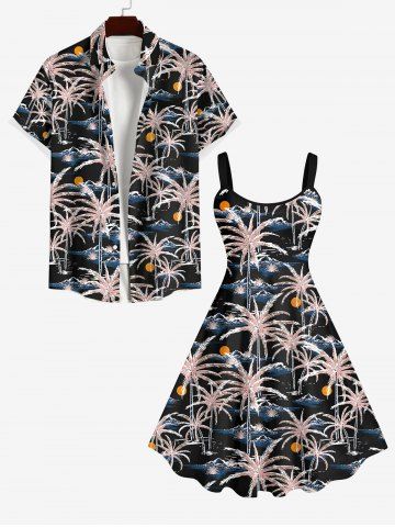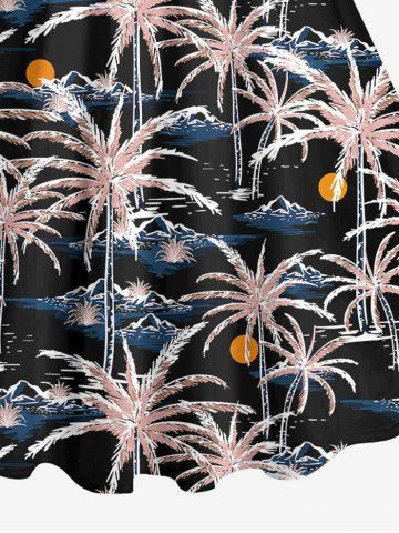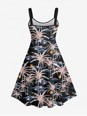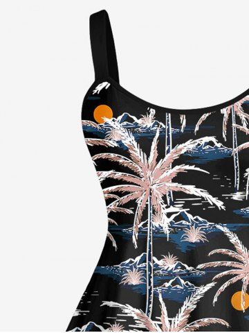 Plus Size Coconut Tree Sun Mountain Print Tank Dress - Black - 1x