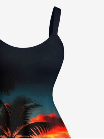 Plus Size Coconut Tree Sun Ombre Dusk Print Hawaii A Line Tank Dress - Black - 1x