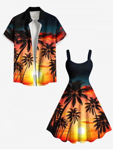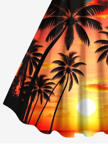 Plus Size Coconut Tree Sun Ombre Dusk Print Hawaii A Line Tank Dress - Black - 4x