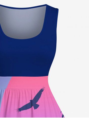 Plus Size Coconut Tree Sun Ombre Print Hawaii 1950s Vintage Dress - Light Purple - 4x