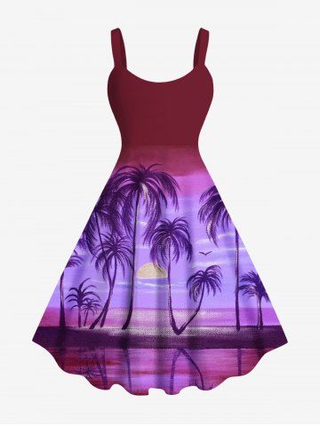 Plus Size Coconut Tree Sun Ombre Print Hawaii Tank Dress - Purple - 5x