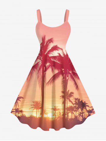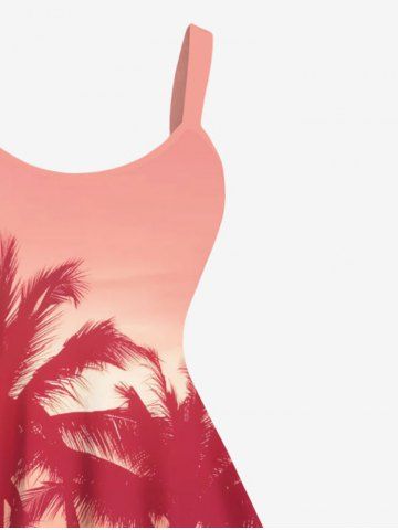 Plus Size Coconut Tree Sun Ombre Print Hawaii Tank Dress - Red - 3x
