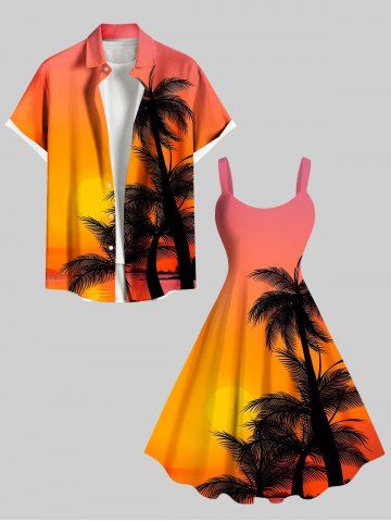 Plus Size Coconut Tree Sun Ombre Print Hawaii Tank Dress - Orange - M