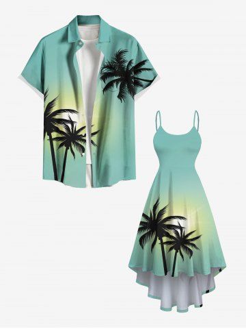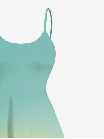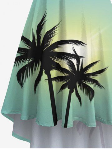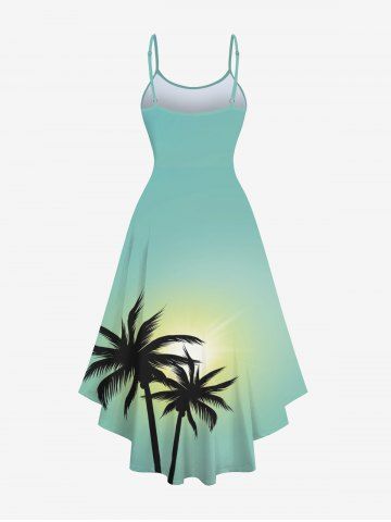 Plus Size Coconut Tree Sun Ombre Print High Low Hawaii Cami Dress - Light Green - L
