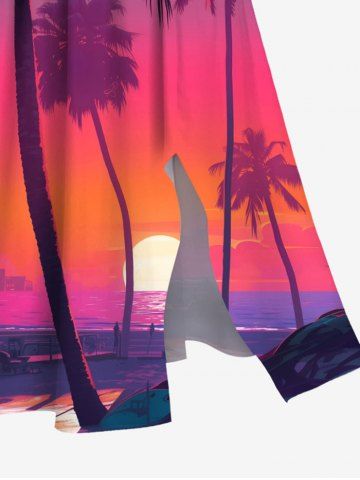 Plus Size Coconut Tree Sun Ombre Sky Print Split Hawaii Midi Dress - Red - 4x