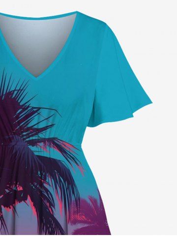 Graphic Dresses > Plus Size Coconut Tree Sun Ombre Sky Print Split Hawaii Midi Dress