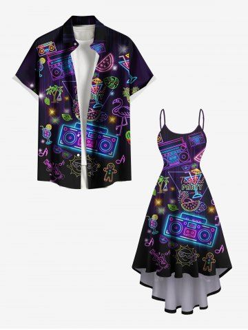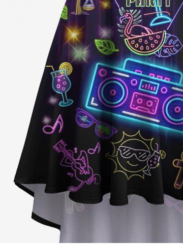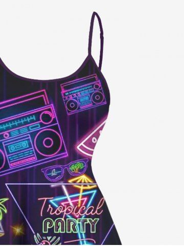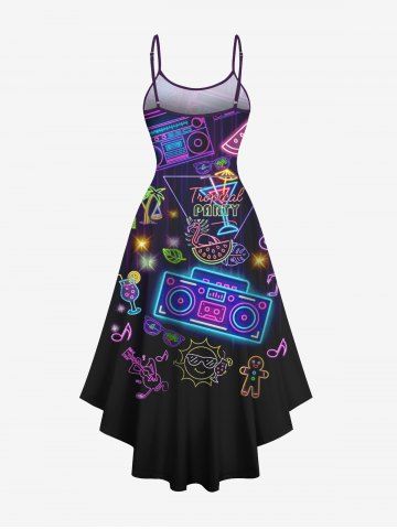 Plus Size Coconut Tree Sun Recorder Flamingo Watermelon Print High Low Hawaii Cami Dress - Black - S