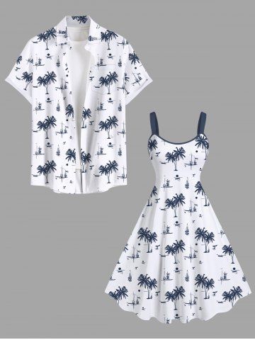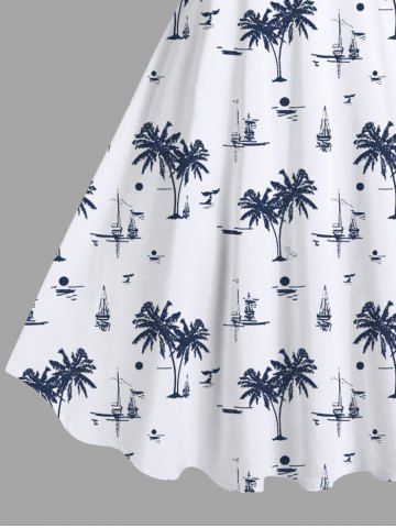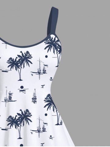 Plus Size Coconut Tree Sun Sailboat Print Hawaii Tank Dress - White - 1x