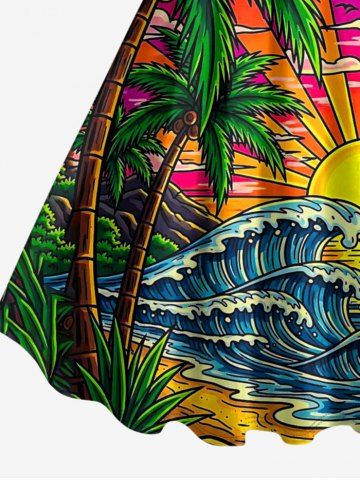 Plus Size Coconut Tree Sun Sea Waves Cloud Print Hawaii Tank Dress - Multi - 4x