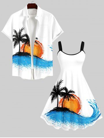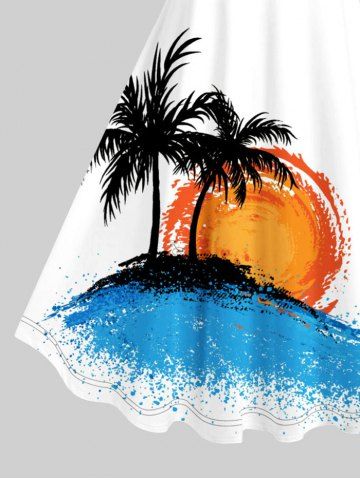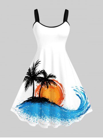 Plus Size Coconut Tree Sun Sea Waves Print Hawaii Tank Dress - White - 6x