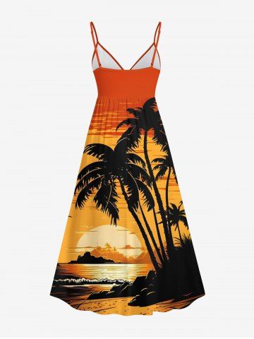 Plus Size Coconut Tree Sun Seascape Bird Print Surplice Hawaii Cami Dress - Orange - Xxs