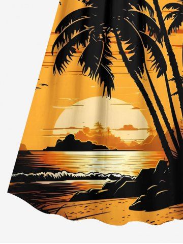 Plus Size Coconut Tree Sun Seascape Bird Print Surplice Hawaii Cami Dress - Orange - 4x