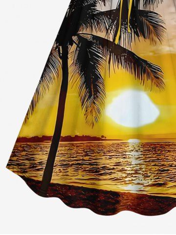 Graphic Dresses > Plus Size Coconut Tree Sun Seascape Print Cinched Hawaii Dress