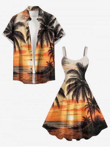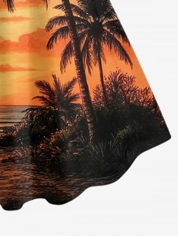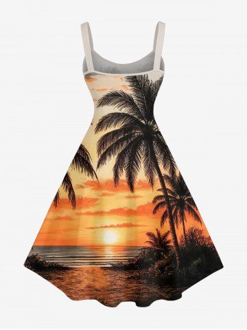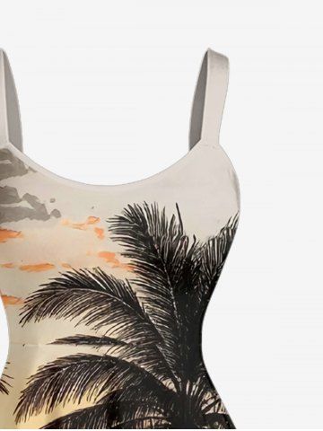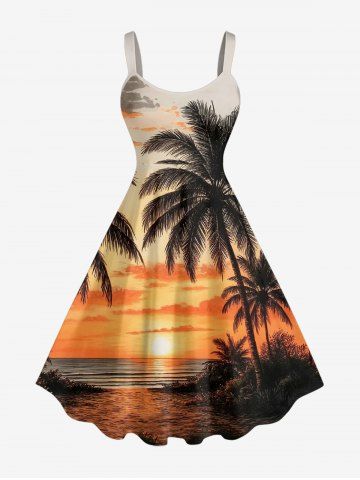 Plus Size Coconut Tree Sun Seascape Print Hawaii Tank Dress - Golden Brown - Xs